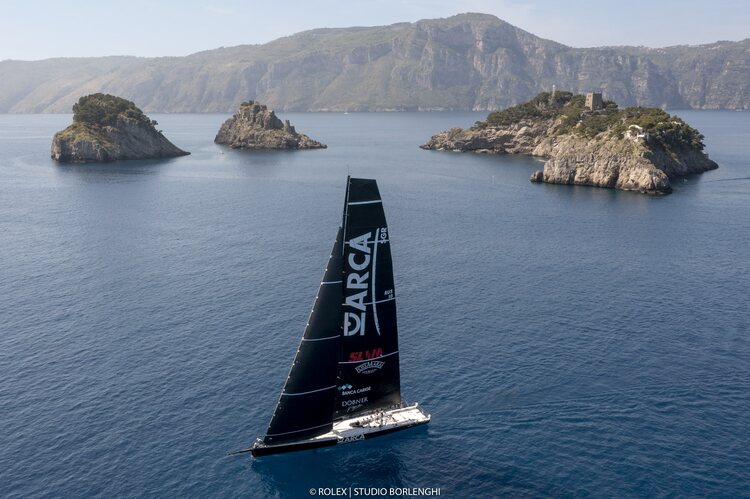 The two MOD70 trimarans Giovanni Soldini's Maserati and Riccardo Pavoncelli's Mana are among the fastest offshore race boats in the world. Permitted to enter the Regata dei Tre Golfi for the first time, they were the scratch boats and started 30 minutes prior to the maxis. But even they struggled in the light and in a scenario that would never normally happen, Furio Benussi's 100ft long scratch monohull ARCA SGR managed to beat Maserati's elapsed time by 13 minutes, with Peter Dubens' former Maxi 72 North Star (ex Rán 2) only taking 13 minutes longer than the Italian trimaran.